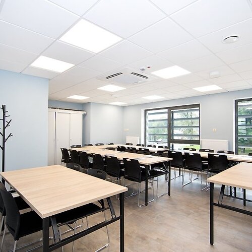 Na I piętrze znajduje się nowoczesna salka konferencyjna z dużą ilością naturalnego światła, mieszcząca do 30 osób.